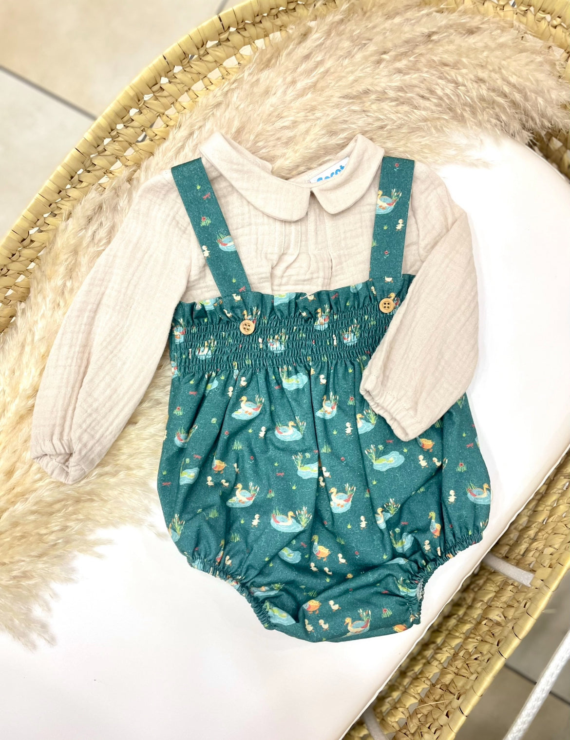 Completo cocote in cotone composto da salopette e camicia
