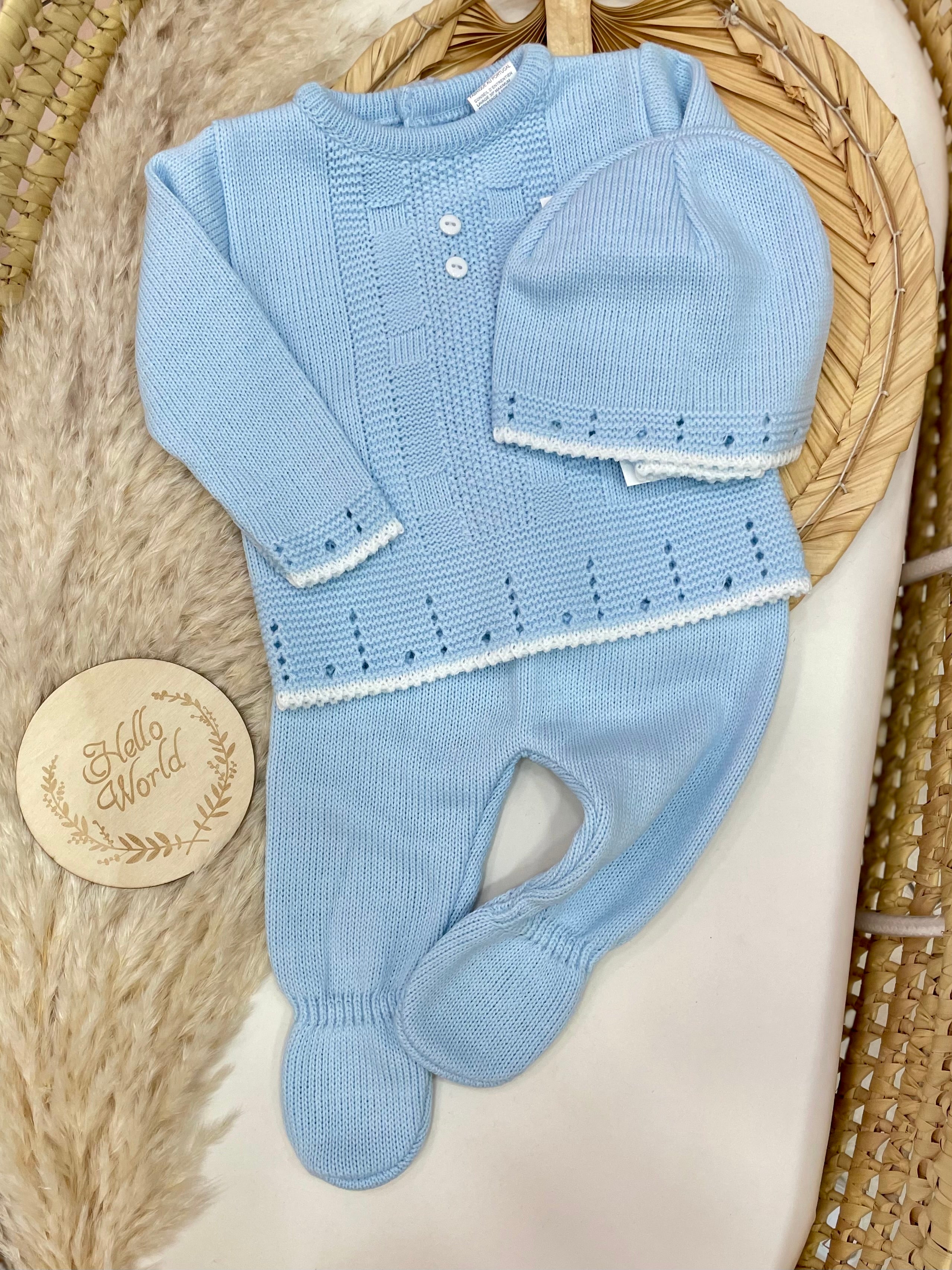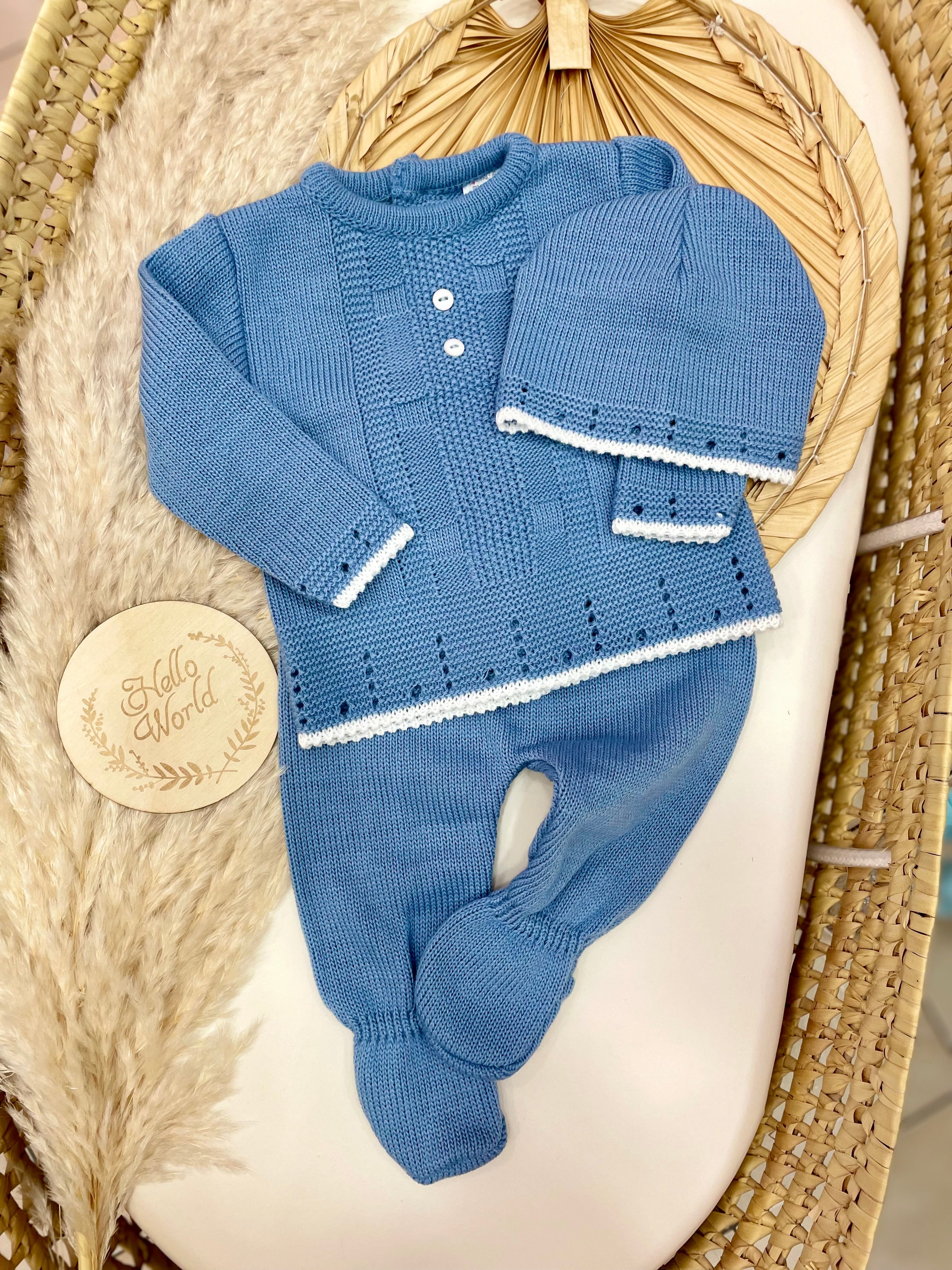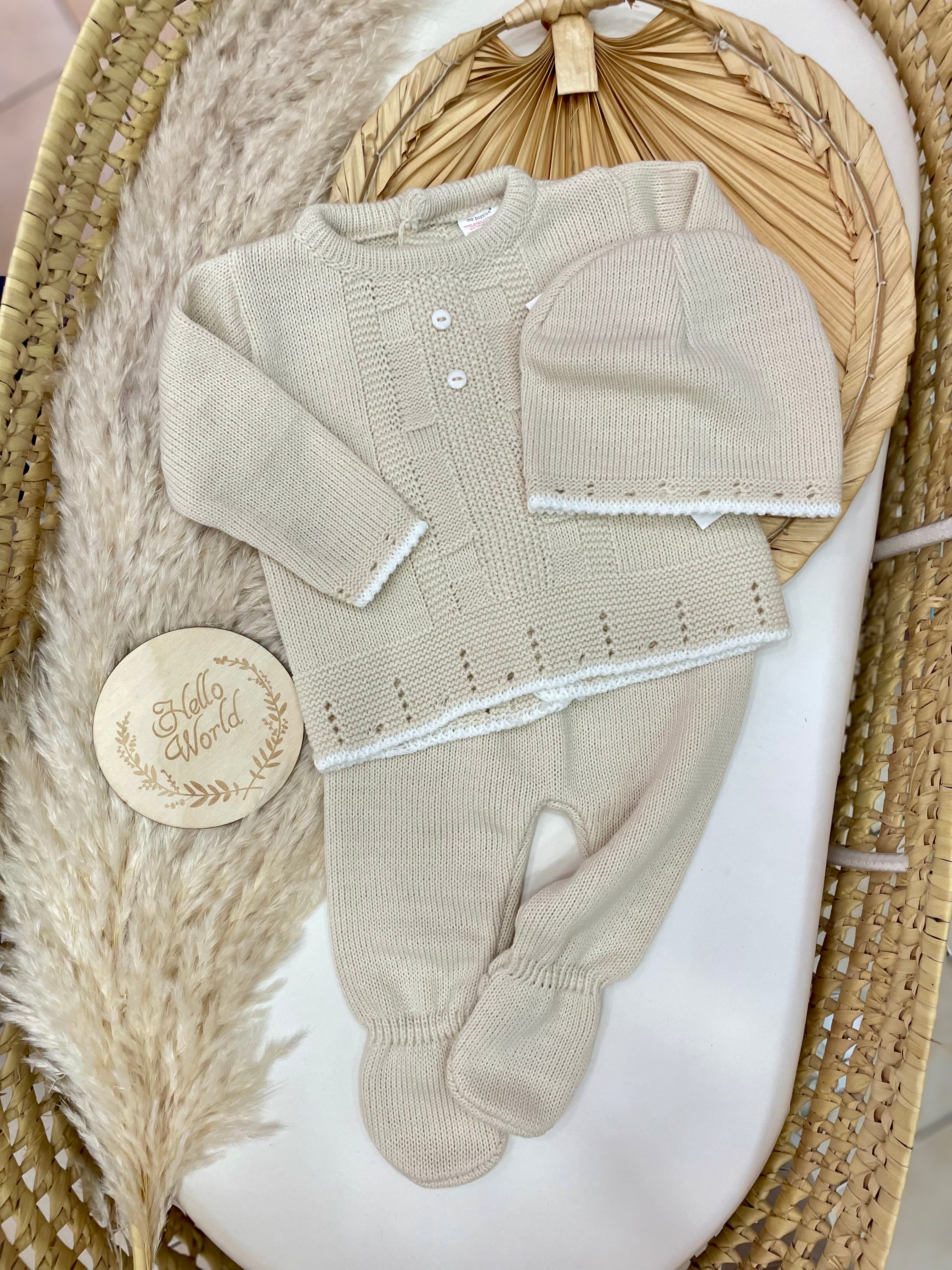 Completo in lana acrilica composto da maglioncino, pantalone e cappellino… Tessuto morbido e delicato per la pelle del bambino