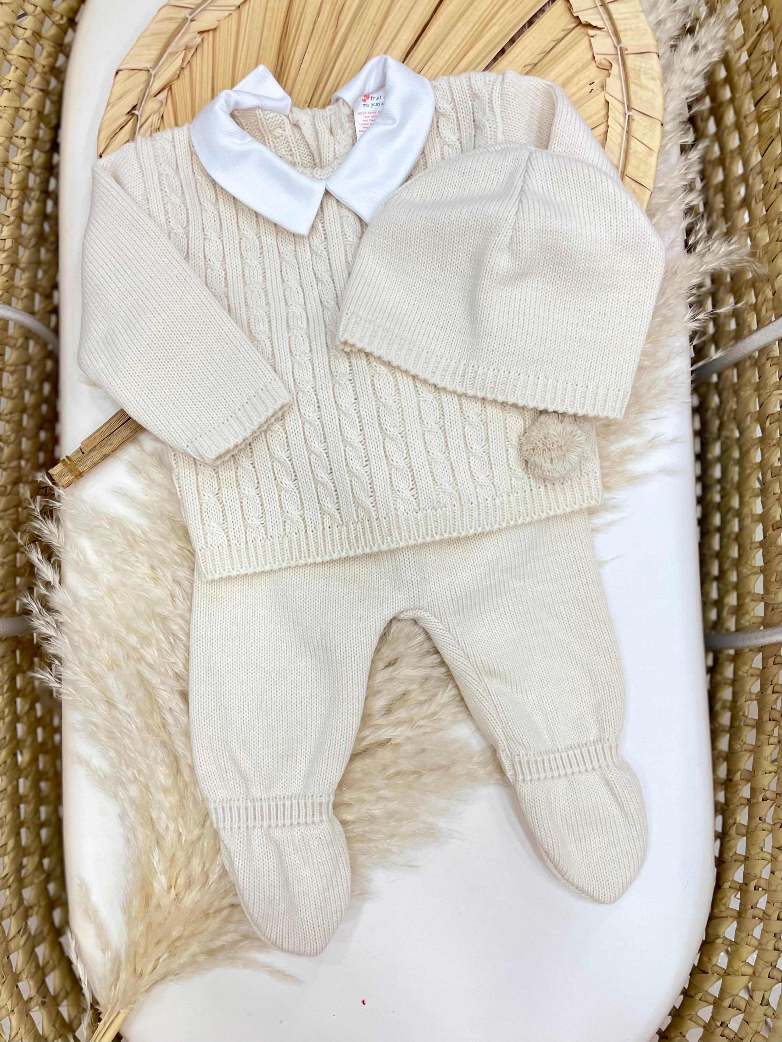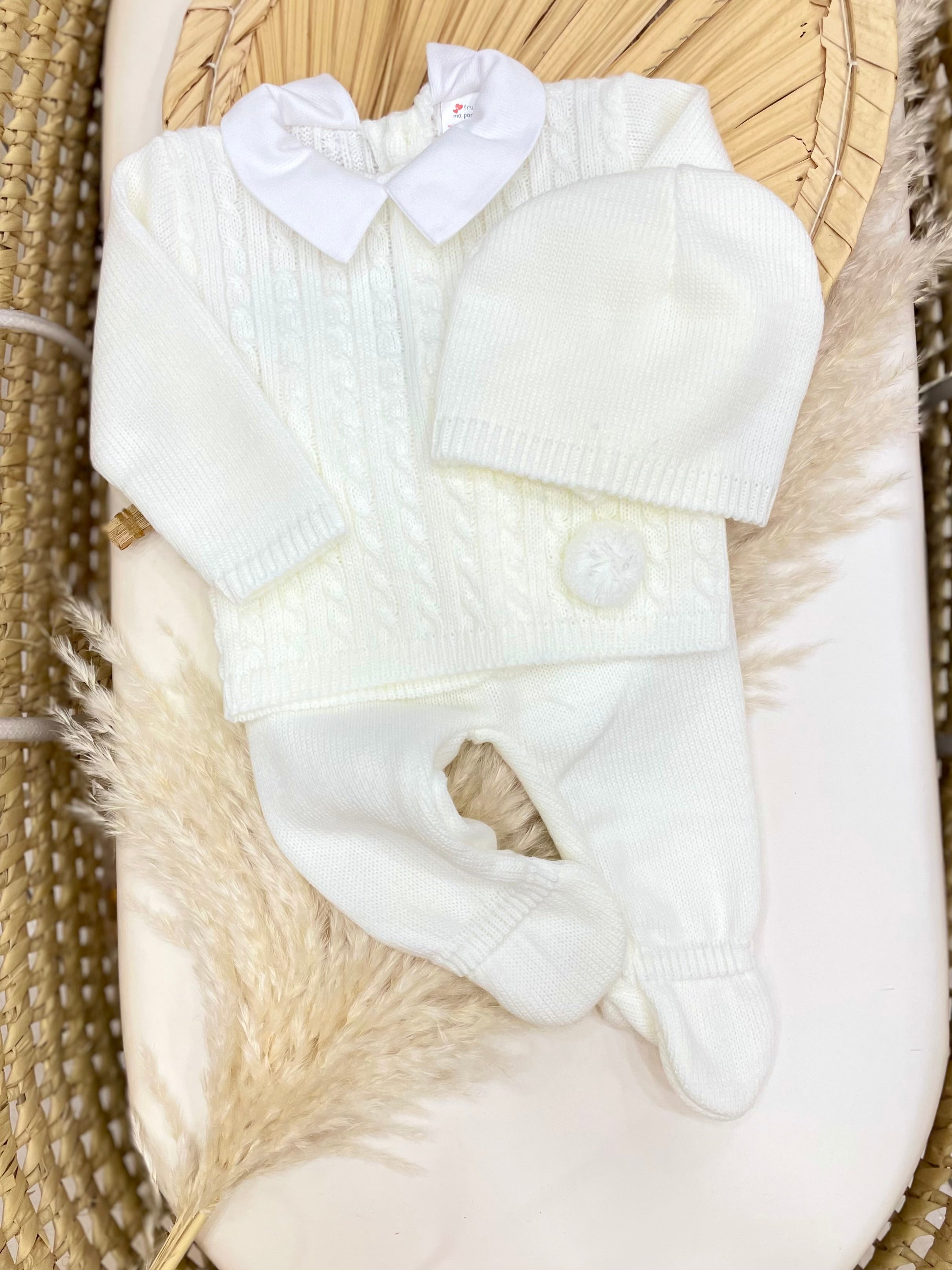 Completo in lana acrilica composto da maglioncino, pantalone e cappellino