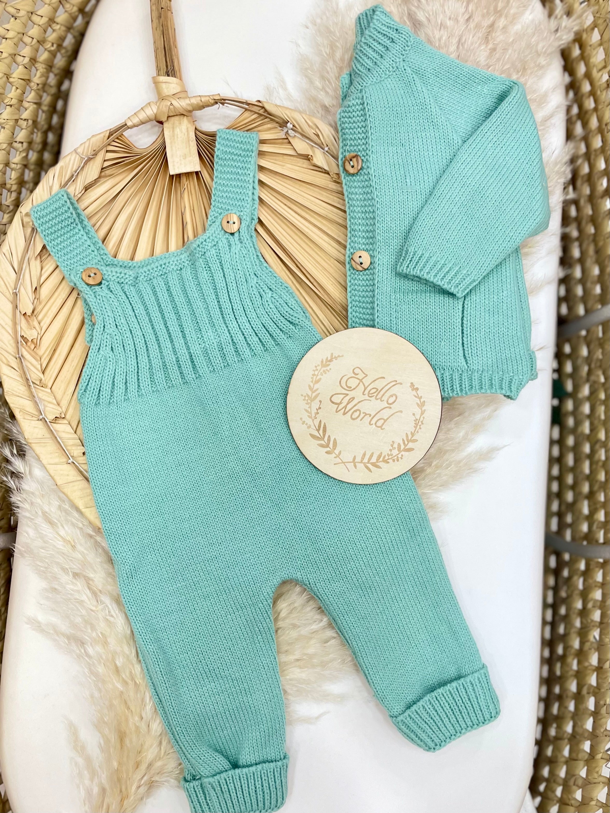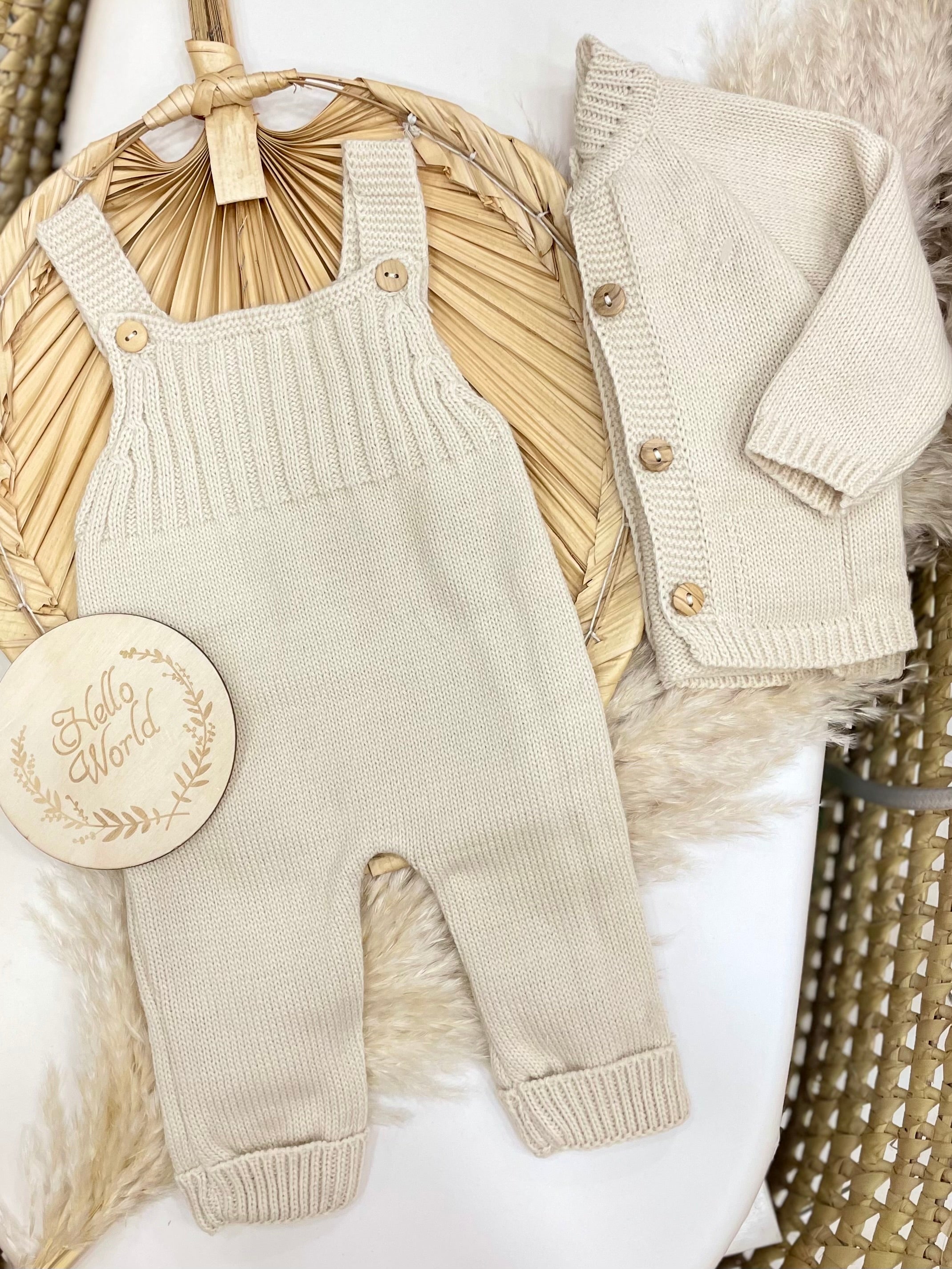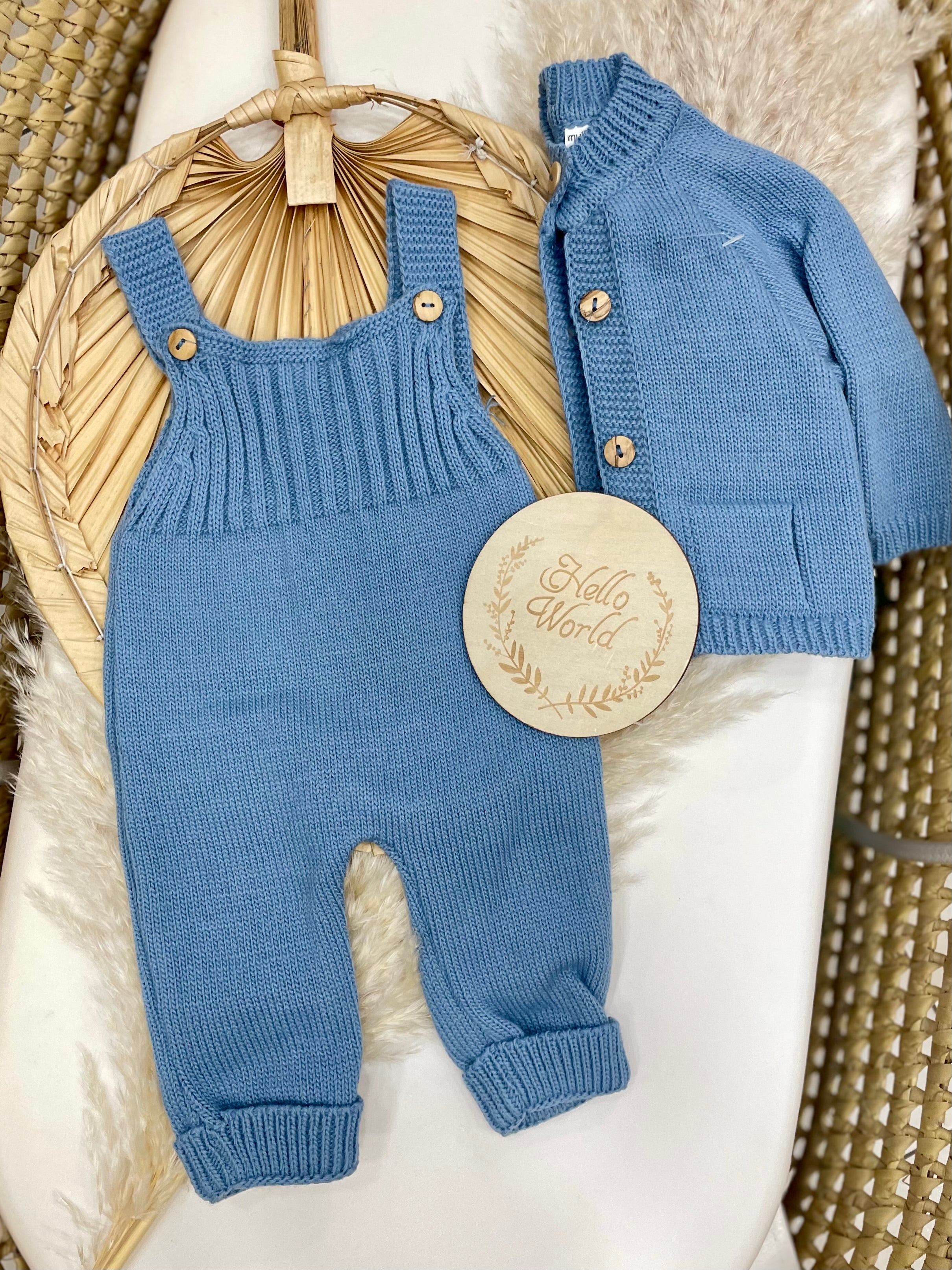 Completo in lana acrilica composto da salopette e cardigan