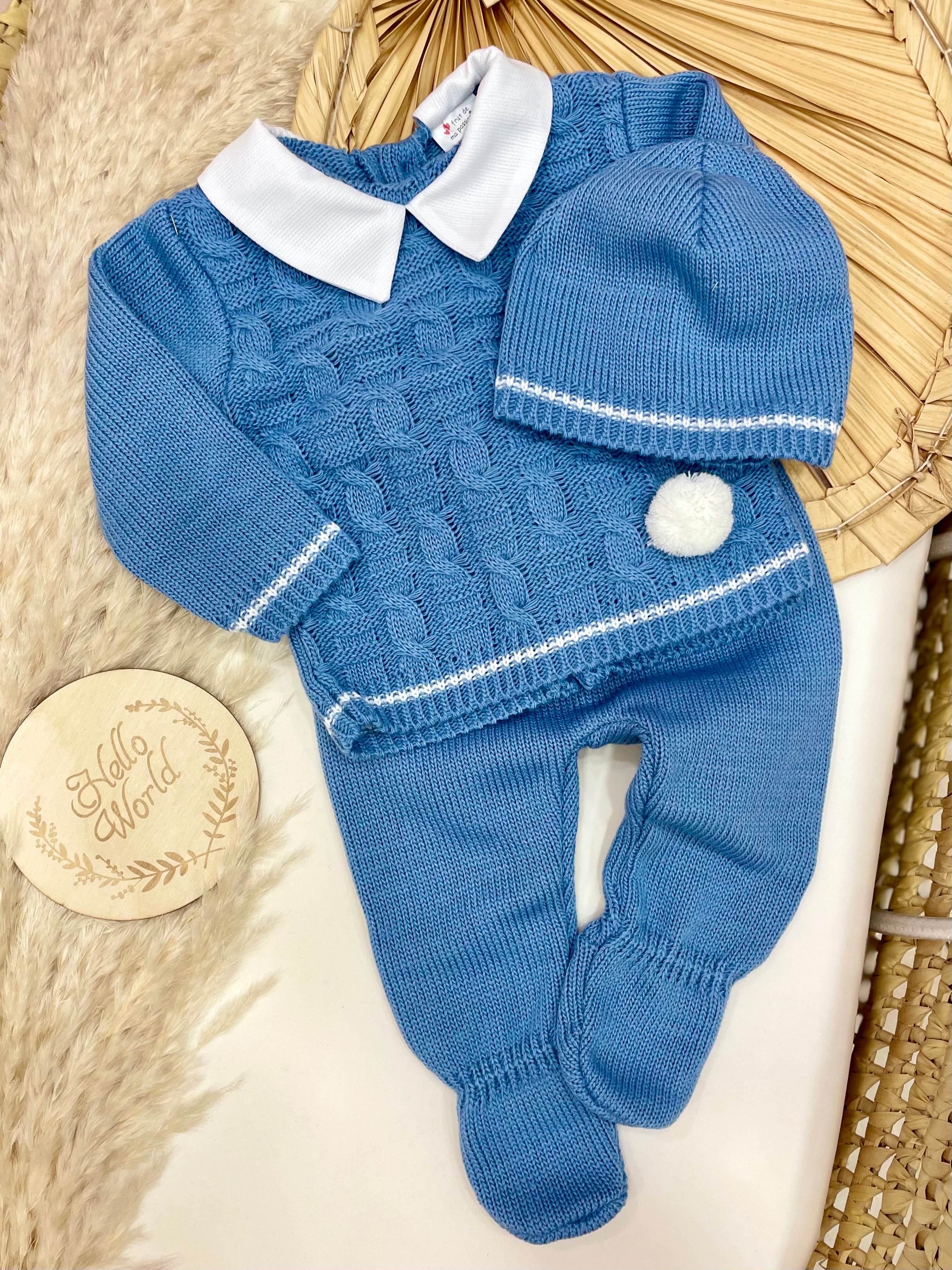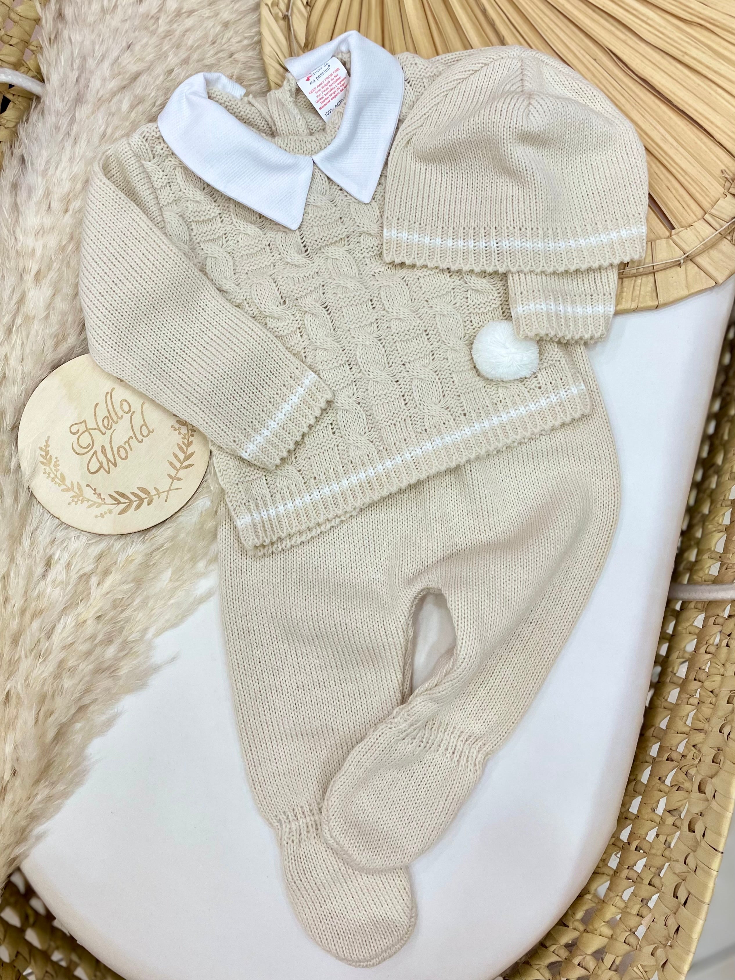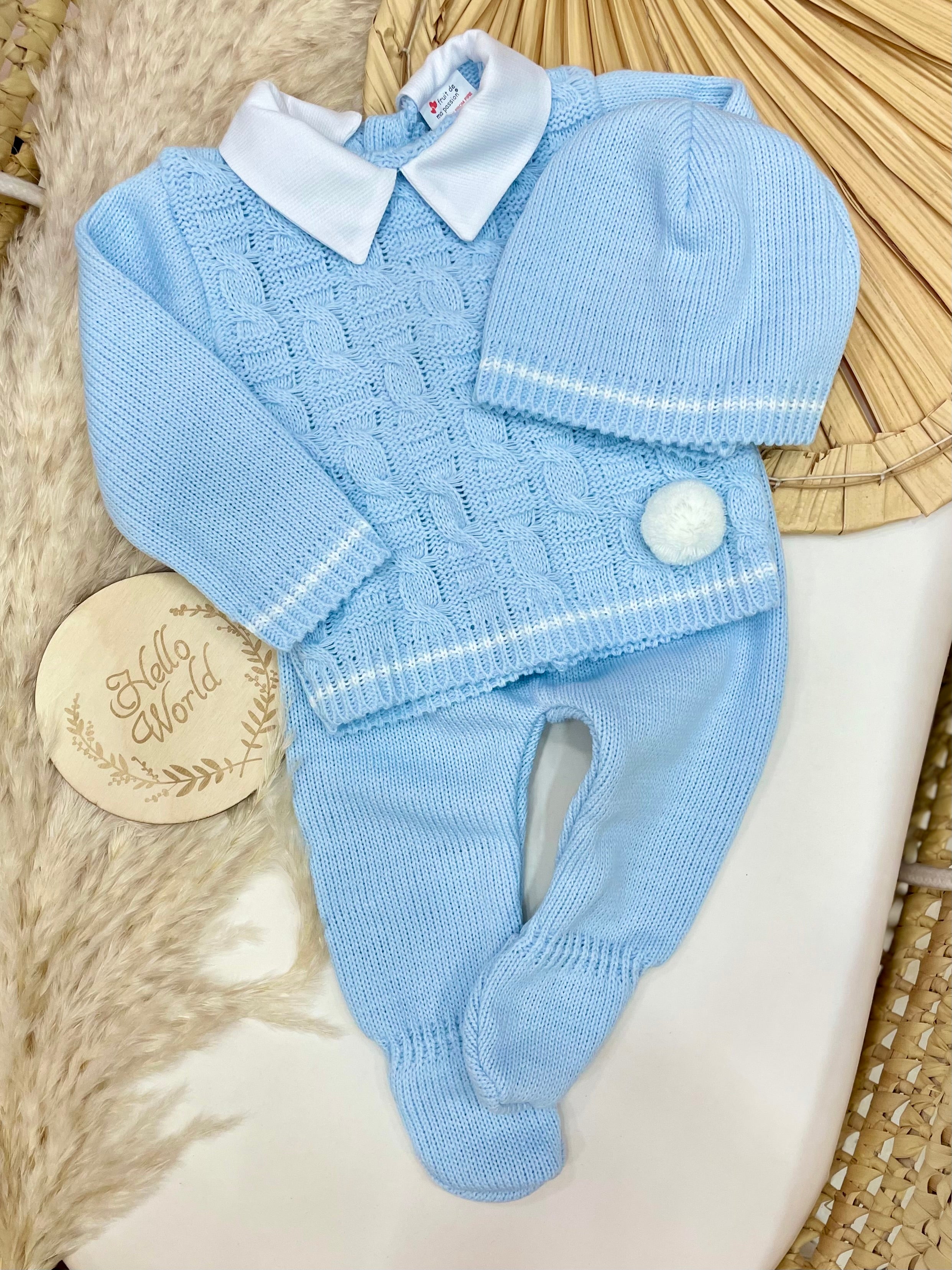 Completo in lana acrilica composto da maglioncino, pantalone e cappellino… Tessuto morbido e delicato per la pelle del bambino