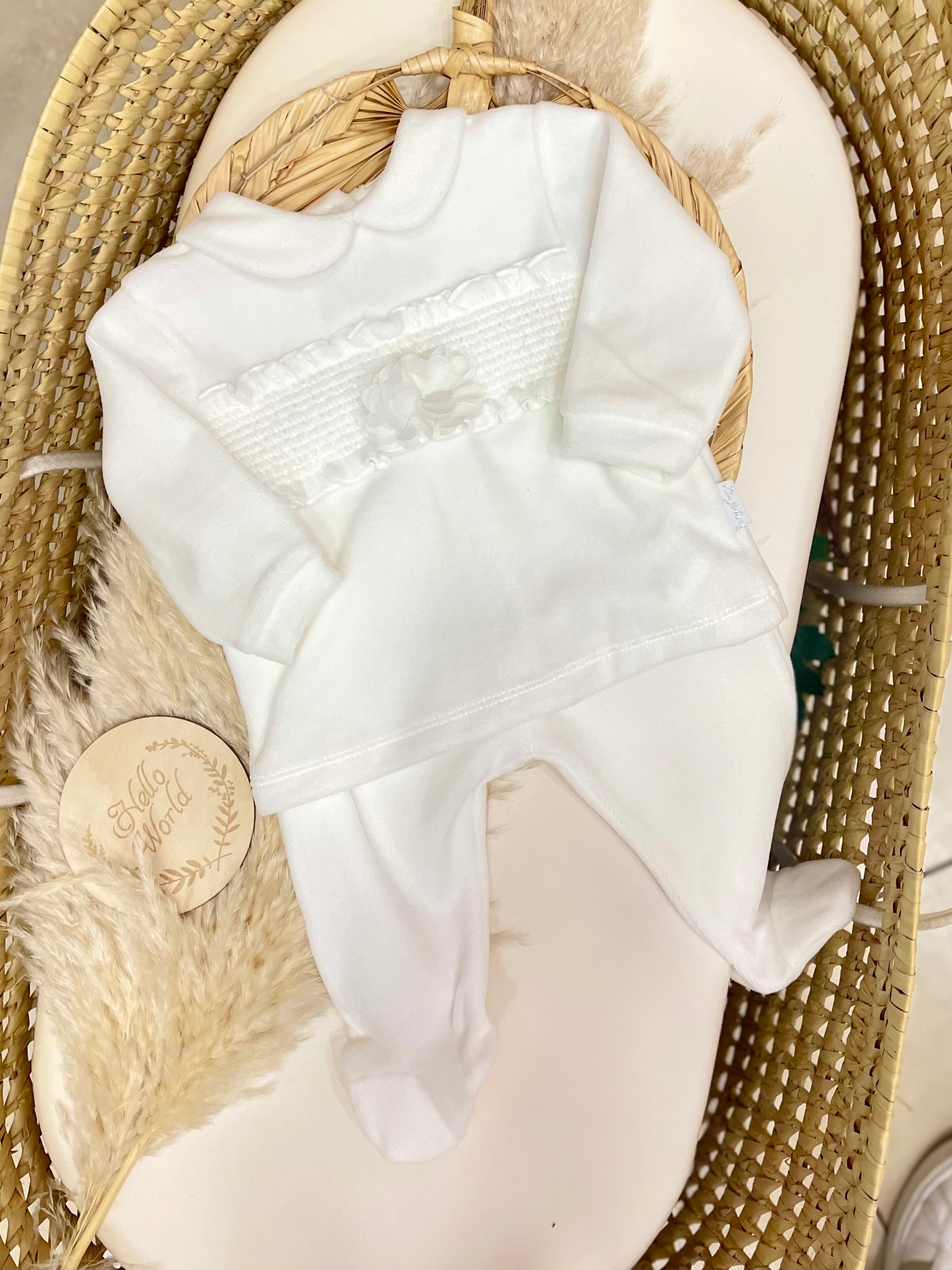 Tutina in Morbida ciniglia, delicato sulla pelle del neonato. Caratteristiche: Maniche lunghe, piedini integrati per mantenere il bambino al caldo. Perfetta per il comfort quotidiano e ideale per ogni occasione!
