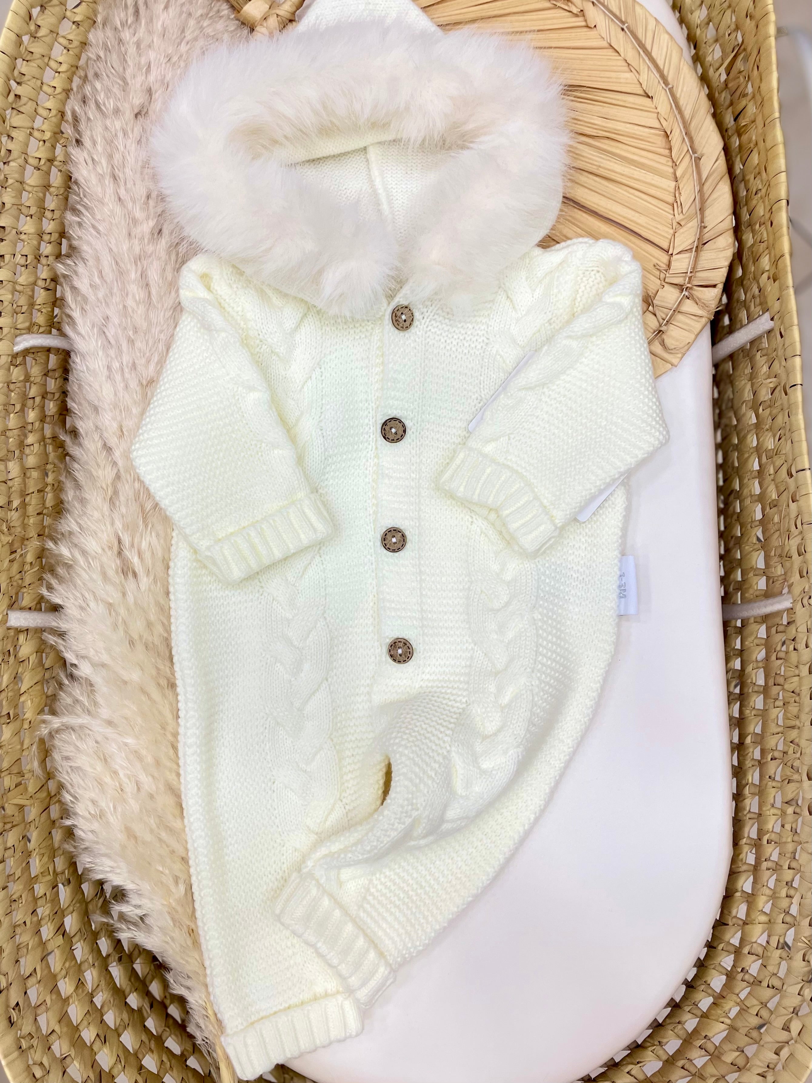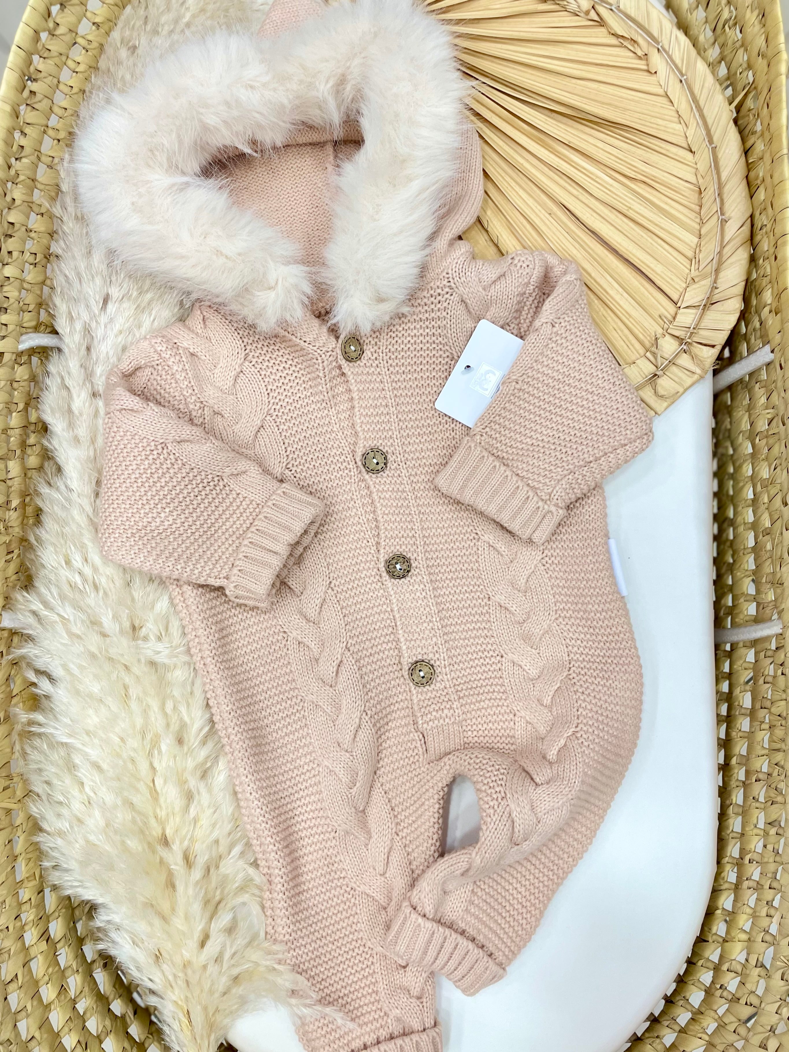 Tutone melanie in misto lana con cappello integrato e pelliccia sintetica