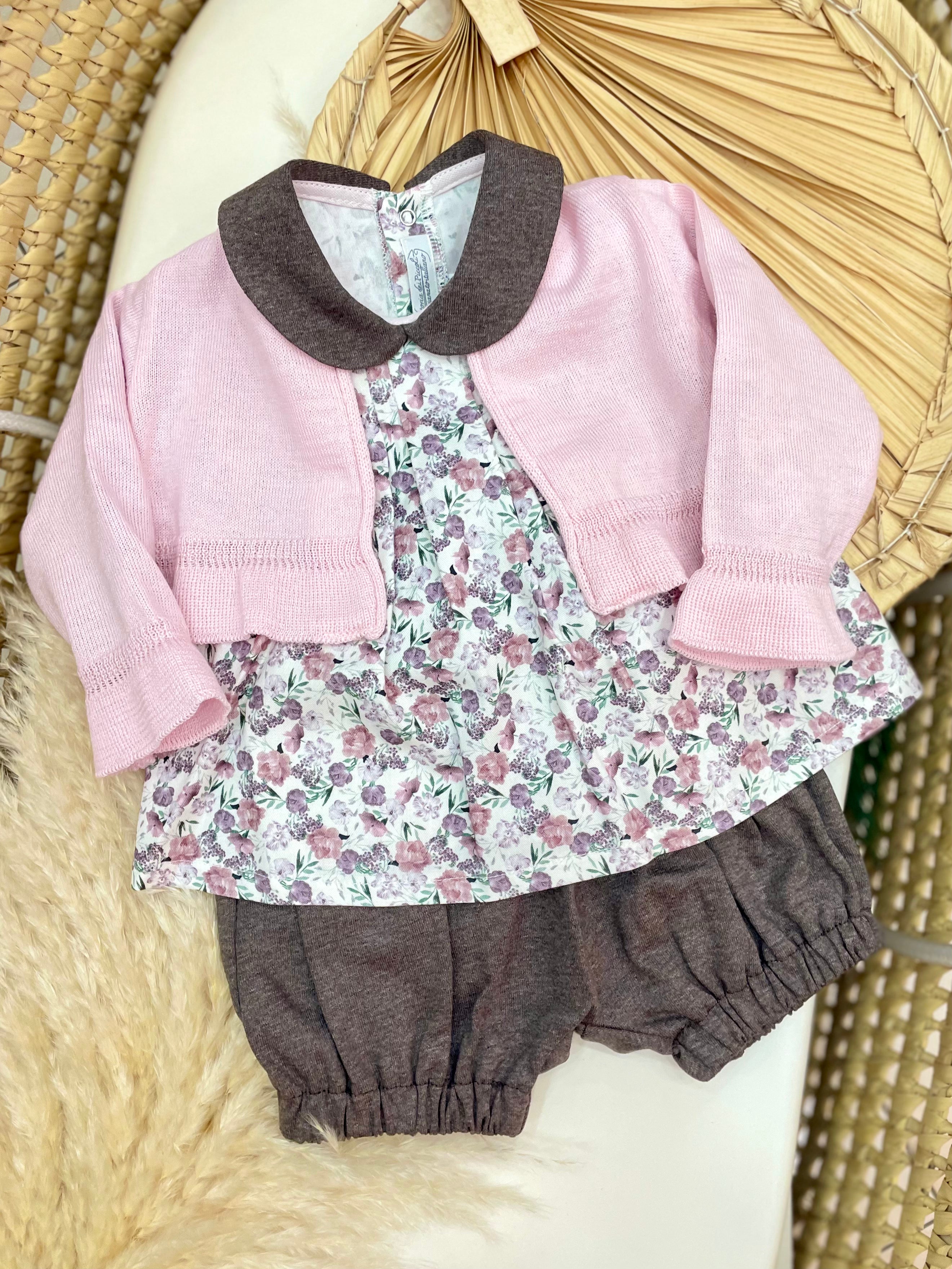 Abitino in cotone “la sartoria dei piccoli” composto da vestina, mutandina e cardigan